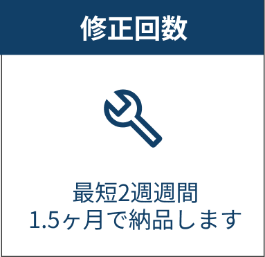 最短で3週間で納品いたします。構成やデザインでこだわる場合、修正が多くなるとその分納期が伸びていきますが基本的には2ヶ月以内には納品が可能です。