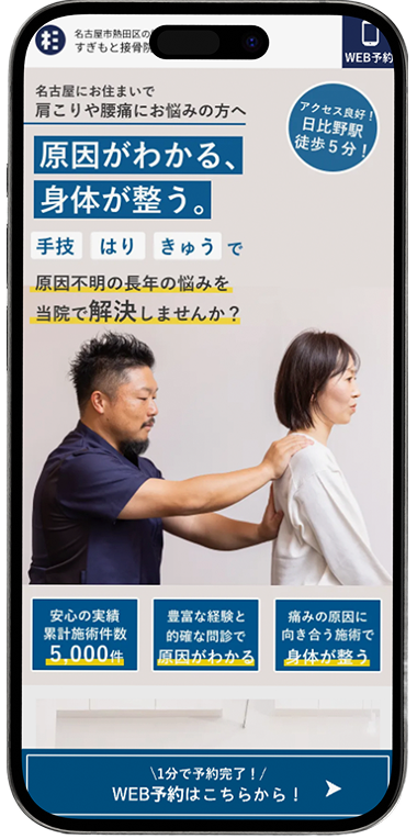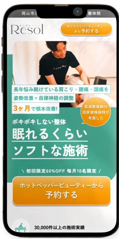 鍼灸というジャンル特性上、鍼灸への不安払拭や効果、効能の教育量を増やし、継続来店前提のユーザーが予約する設計に。